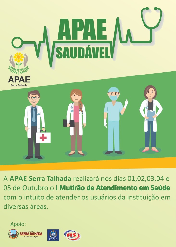 O I Mutirão de Atendimento em Saúde da APAE Serra Talhada teve sua abertura na última segunda-feira (01/10), iniciando o mês de outubro ofertando vários atendimentos na área de saúde e assistência social para os usuários e famílias da APAE. O movimento de atendimento conta com a parceria da FIS, FAMA e com a prefeitura municipal.